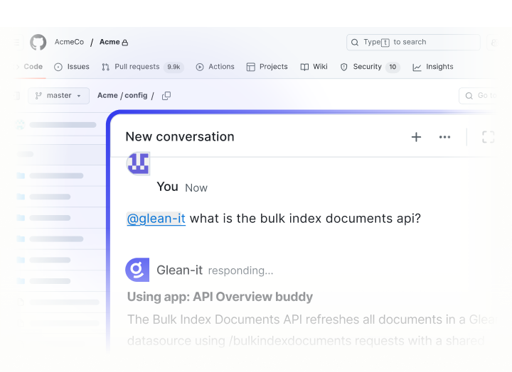 Glean in GitHub gives developers instant access to company knowledge, AI-powered code reviews, and automated PR documentation.