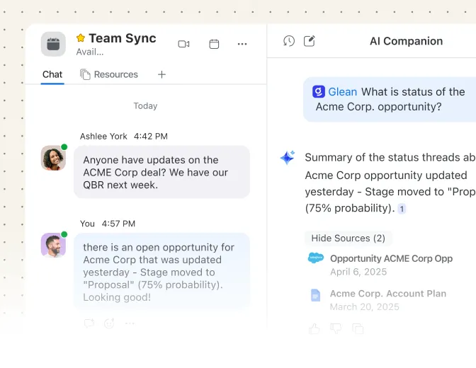 Glean combines Slack conversations with insights from your other enterprise tools to give you everything you need to make informed decisions.