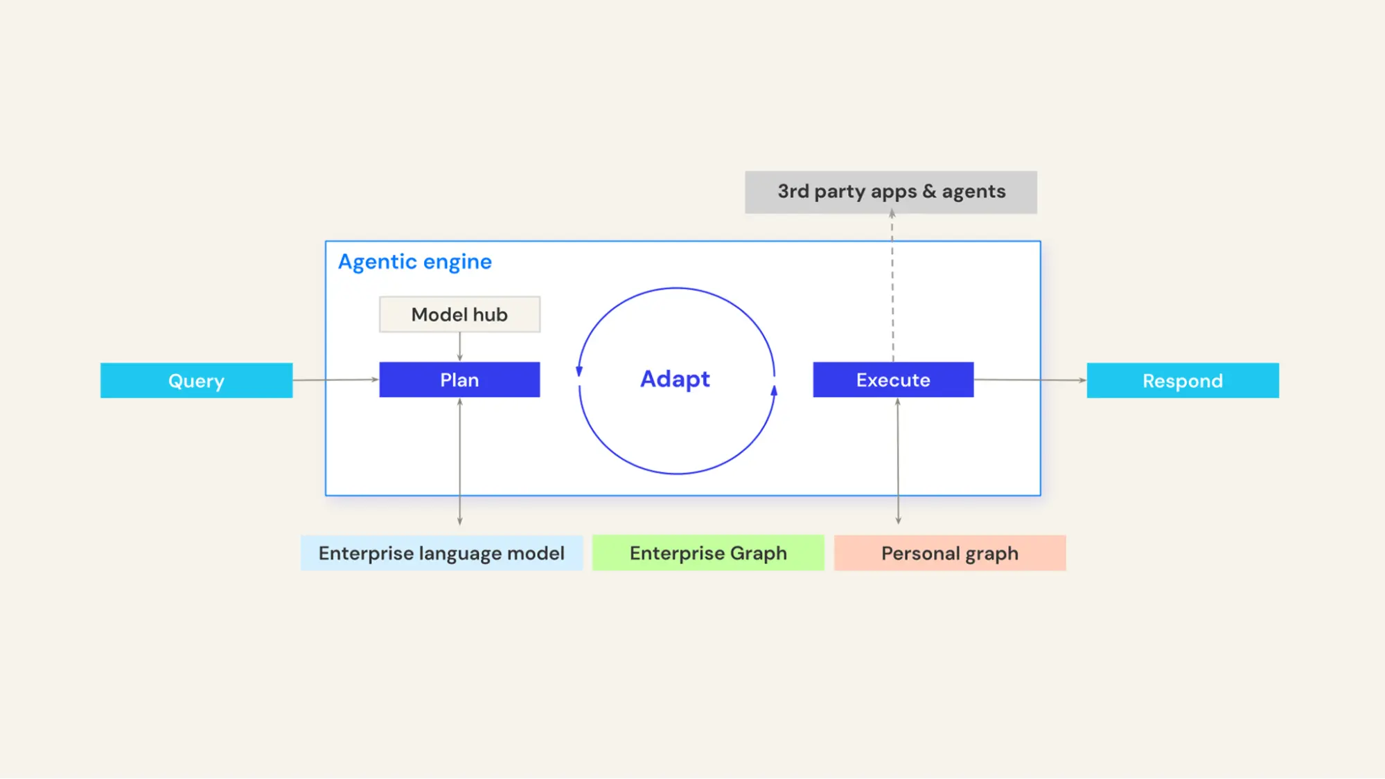 Agentic Engine 2 infuses enterprise understanding into planning (grounded in how you actually work), execution (finding the best tools and iterating toward completion), and memory (persisting durable learnings to the Enterprise Graph and personal graph). The Engine now better addresses direct end‑user feedback, supporting a complex query class that represented 20% of feedback. This boost is reflected in Assistant engagement, with 21% more queries run.