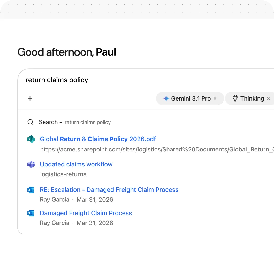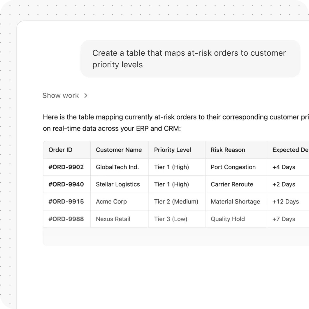 Help supply chain teams find cross-chain context, respond faster to disruptions, and scale operational expertise across systems.