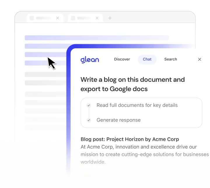Gleanのブラウザ拡張機能は、あらゆるタブにエンタープライズAIをもたらします。仕事場ですぐに調査、執筆、回答を得られます。
