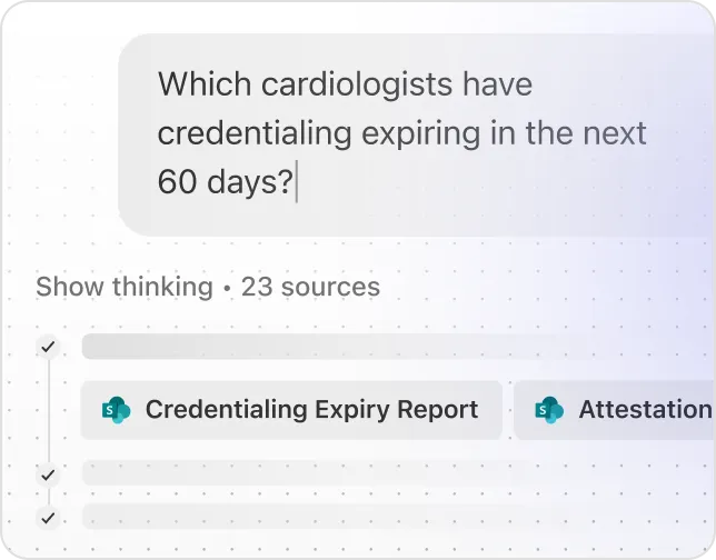 支払者ポリシーから臨床プロトコルまで、Glean はシステム全体の点を結び、スタッフが必要なものを見つけて自信を持って行動できるようにします。