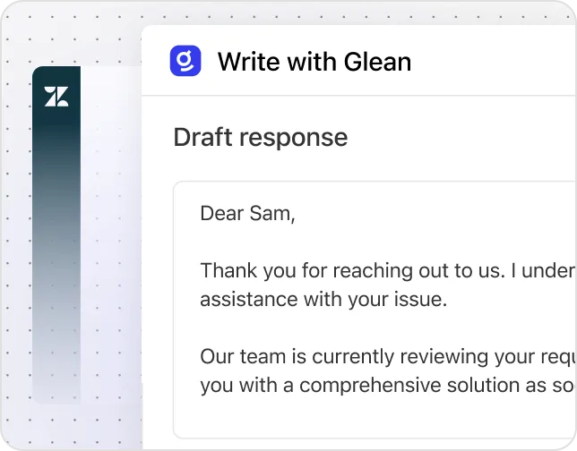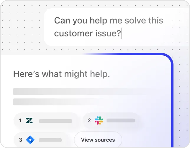 さまざまなデータソースに分散した回答を即座に見つけ、チャットを活用して会社の口調と声で顧客からの回答を作成します。